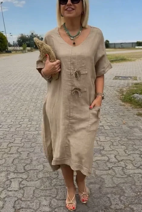Women's summer dress with V-neck and forest pattern Maxi dress