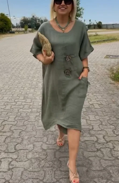CLEARANCE🔥Linen dress with buttons and a round neckline