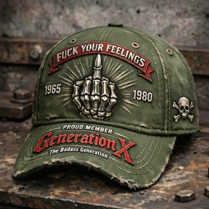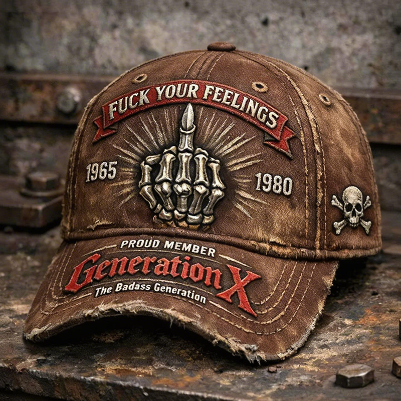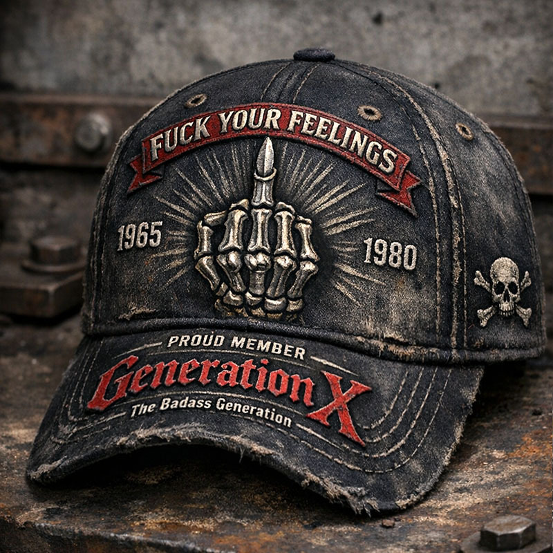 Make a bold statement with this rugged Generation X vintage distressed baseball cap. Designed for those born between 1965–1980, this cap represents independence, resilience, and unapologetic authenticity. Featuring a striking skeleton middle-finger graphic and edgy embroidered lettering, it’s more than a hat—it’s an attitude.