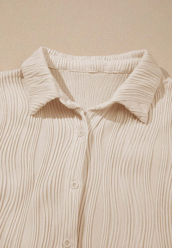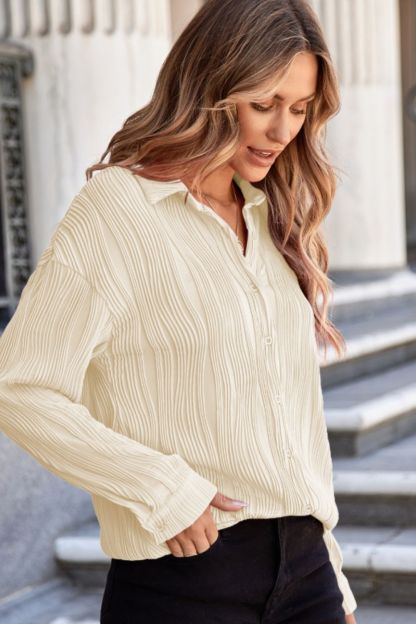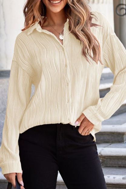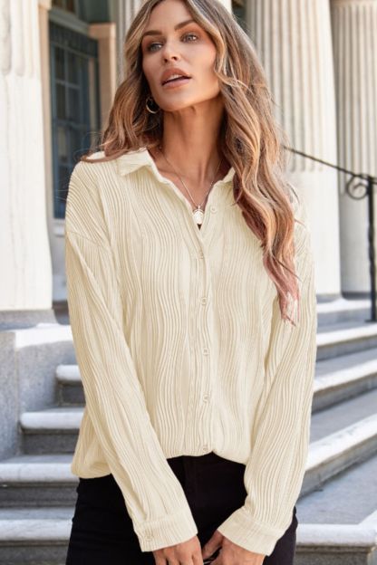 Texture Collared Neck Button Down Long Sleeve Shirt