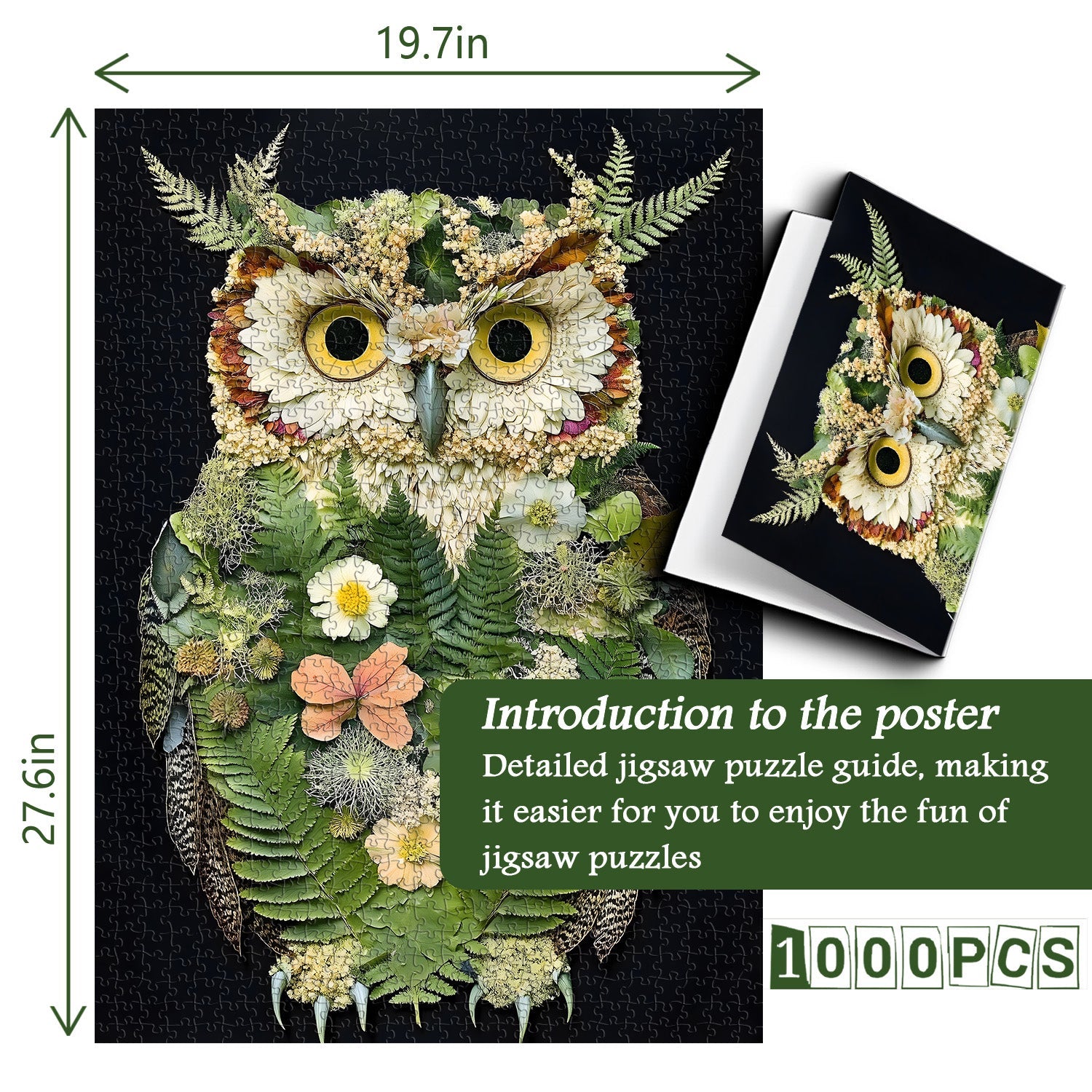🦉【Package Included】 High-definition colorful jigsaw puzzle 1000 pieces, jigsaw reference book and sturdy box.